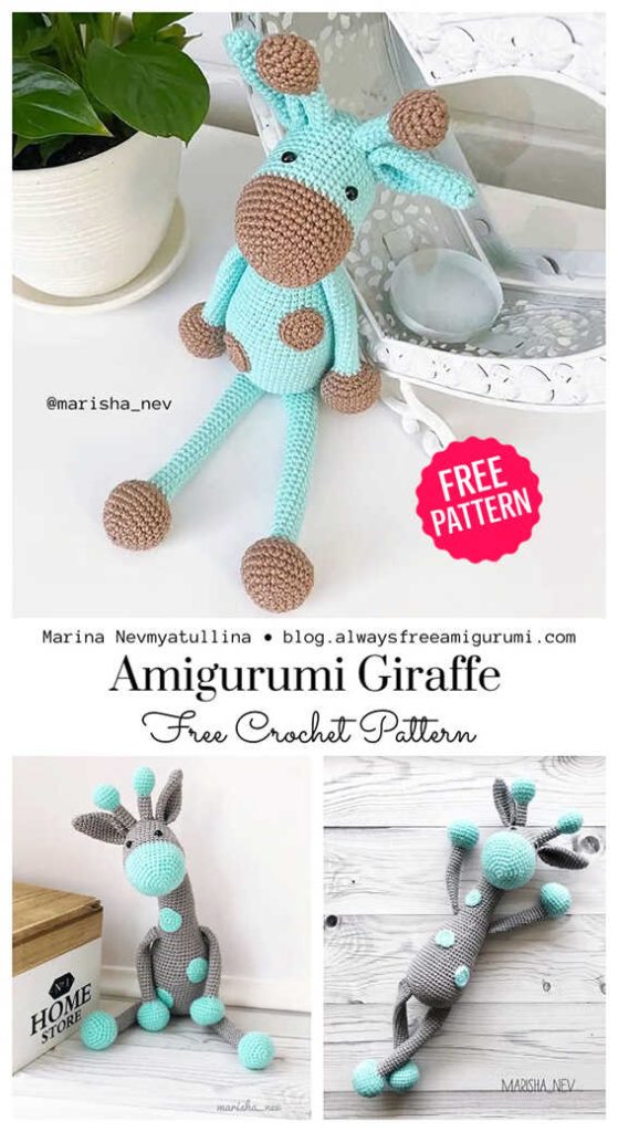 Meet the adorable Amigurumi Giraffe, beautifully designed by Marina Nevmyatullina (VK)! This free crochet pattern is perfect for crafters looking for a step by step, beginner-friendly project that results in a charming, huggable toy. All details of this giraffe are crocheted in a spiral without slip stitches or lifting loops, creating a smooth and seamless finish. The finished toy measures approximately 32 cm (12.5″), making it a delightful size for display or snuggling. This pattern guides you through every stage with clear instructions, ensuring even beginner crocheters can successfully bring this whimsical giraffe to life.