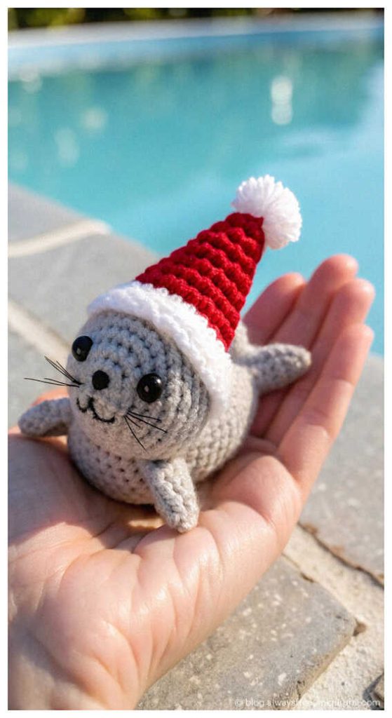 Free Christmas Seal Amigurumi – Crochet Pattern Tutorial designed by demiwool is a fast and fun festive project that’s perfect for the Christmas holidays. This step by step, beginner friendly, low-sew amigurumi features a cute seal wearing a Christmas hat, making it ideal as a kids’ toy or a charming Christmas home decoration. When crocheted with the recommended materials, the finished seal measures approximately 7.6 cm (3 inches) in length, excluding the hat. At the end of the pattern, you’ll also find inspiring amigurumi Christmas Seal ideas to help you customize colors, details, and festive styling. Many thanks to demiwool (Ravelry Store) for sharing this lovely free crochet pattern.