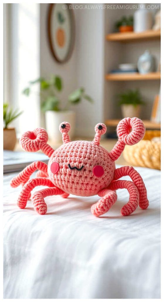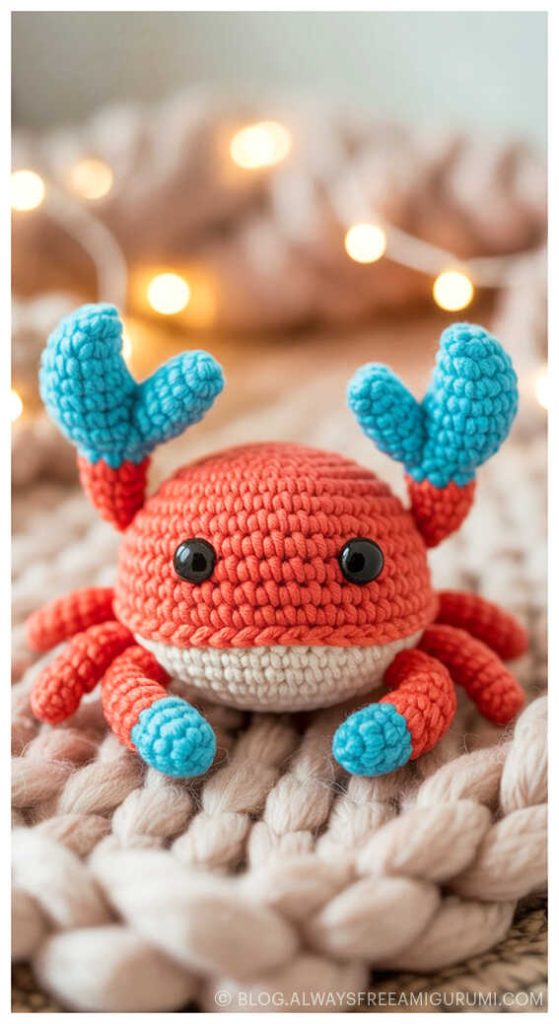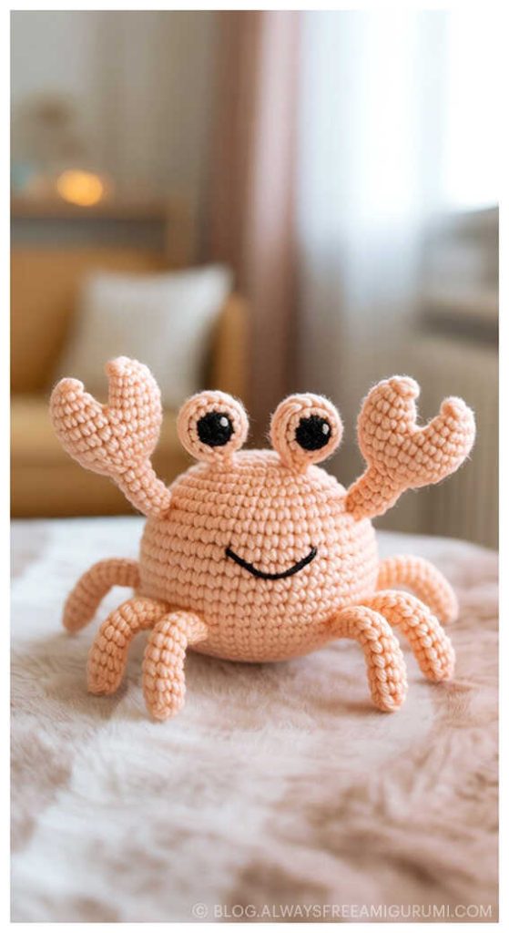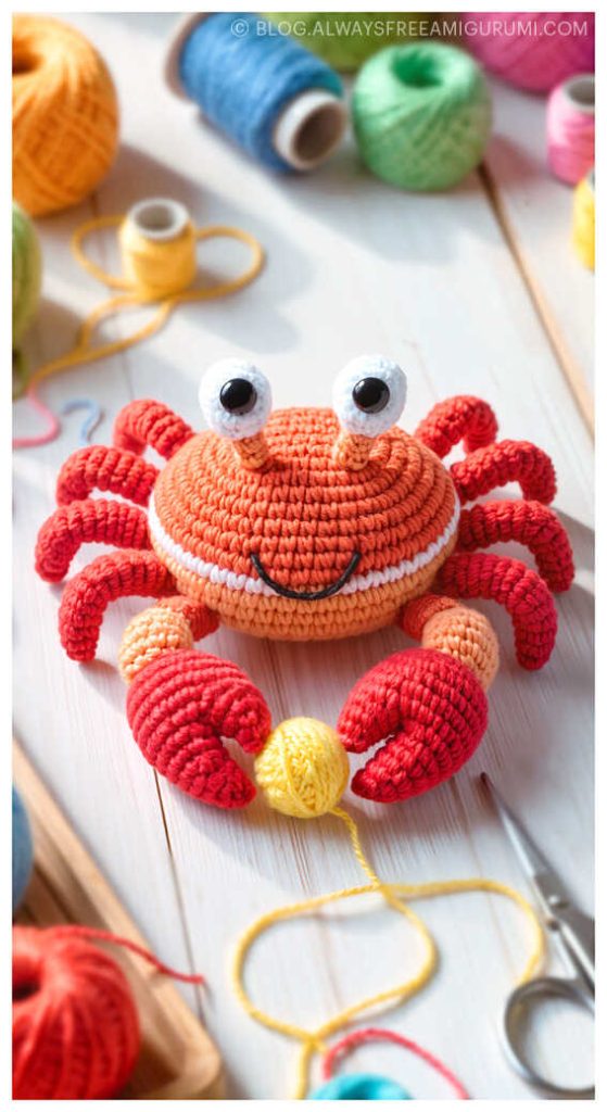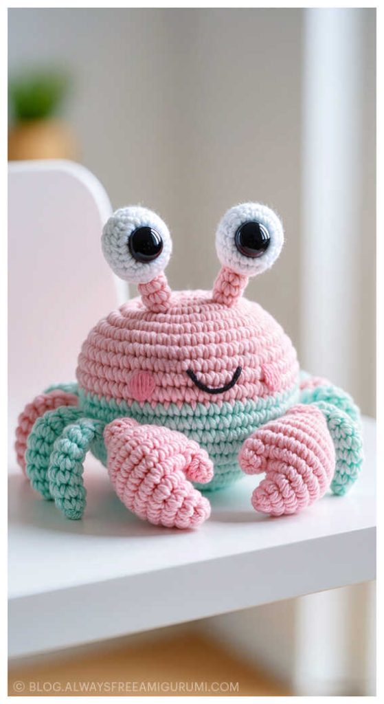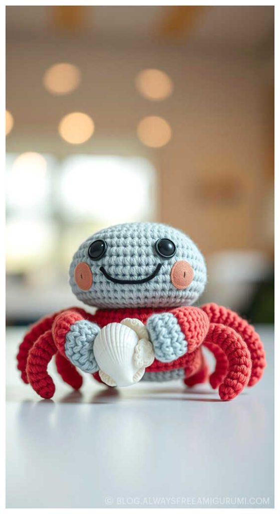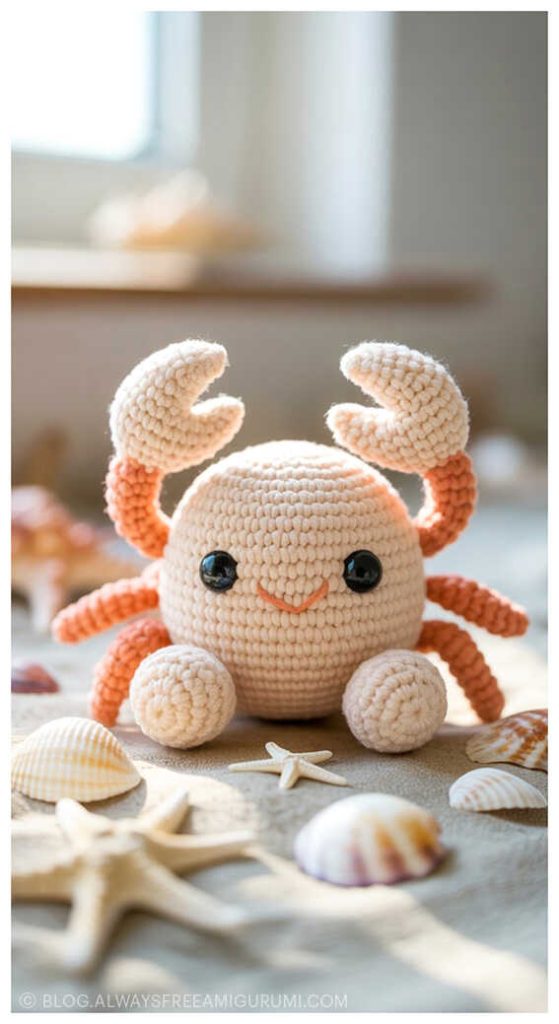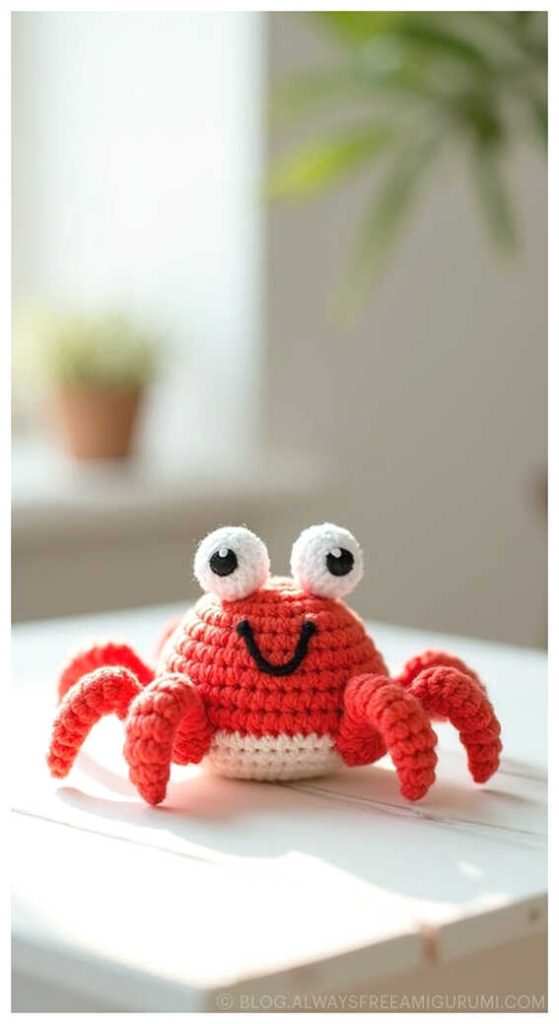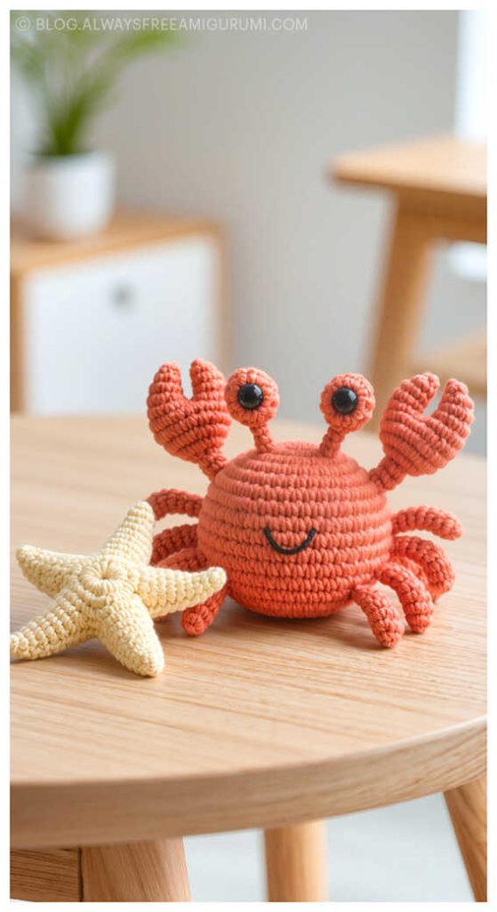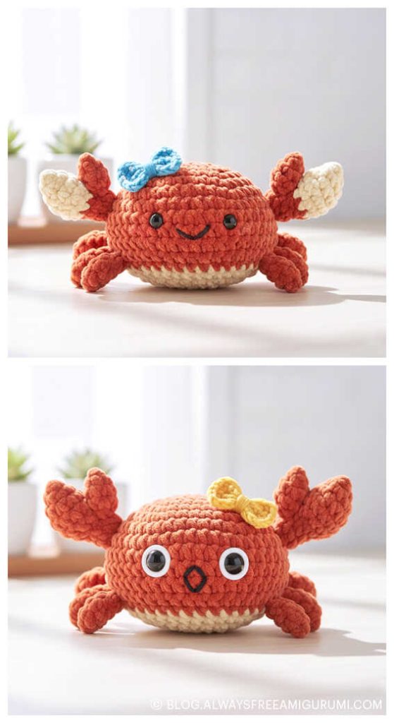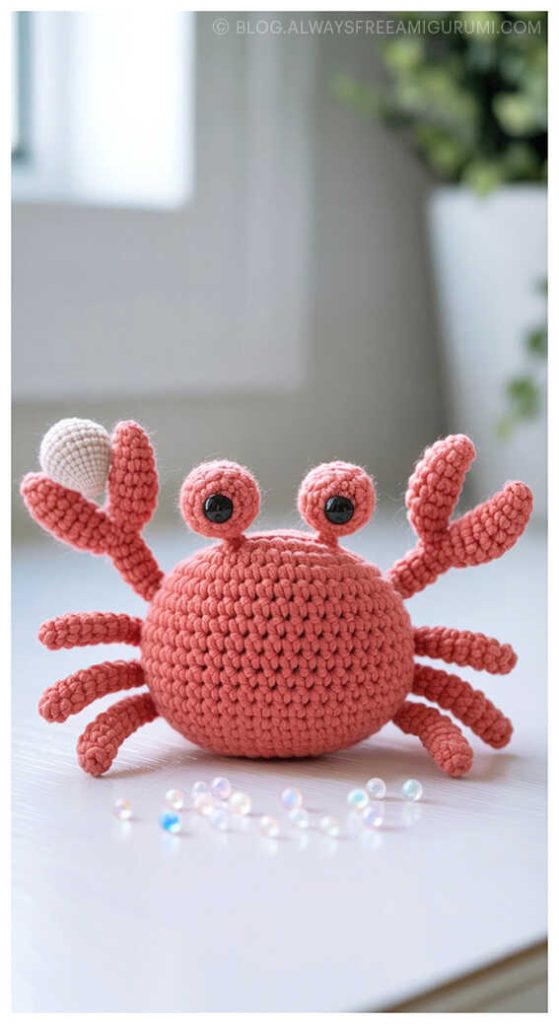 Created with beginners in mind, Carlina’s pattern offers clear instructions and an enjoyable crochet experience from start to finish. The finished baby crab makes a delightful handmade gift or a cute coastal touch for your amigurumi display. Explore the full free pattern below — and don’t miss the creative amigurumi crab ideas we’ve included at the end for even more seaside inspiration!