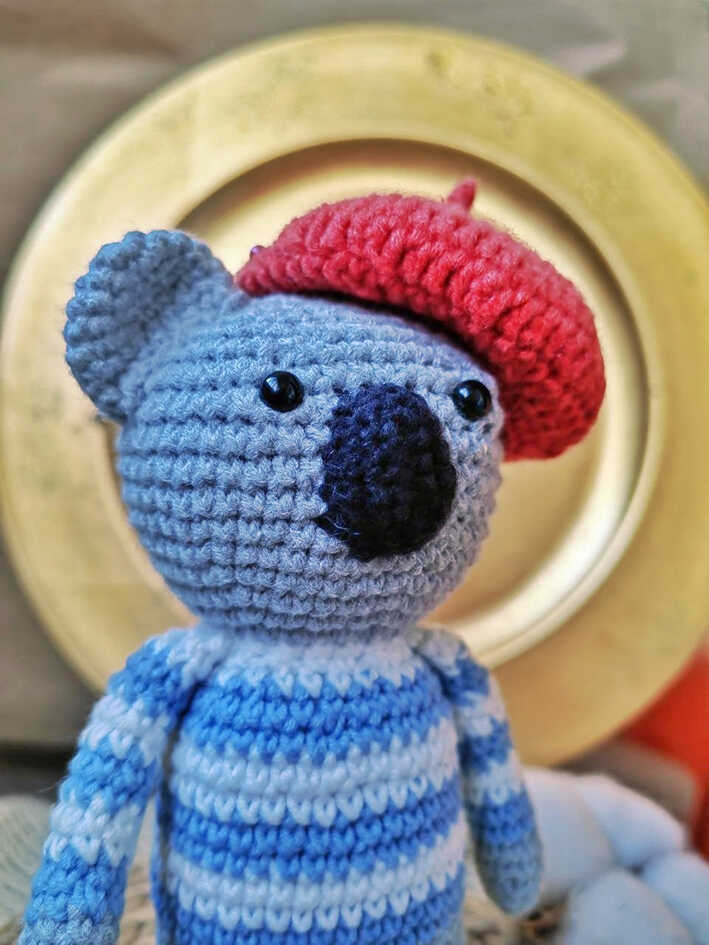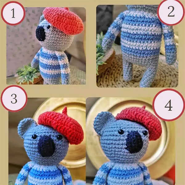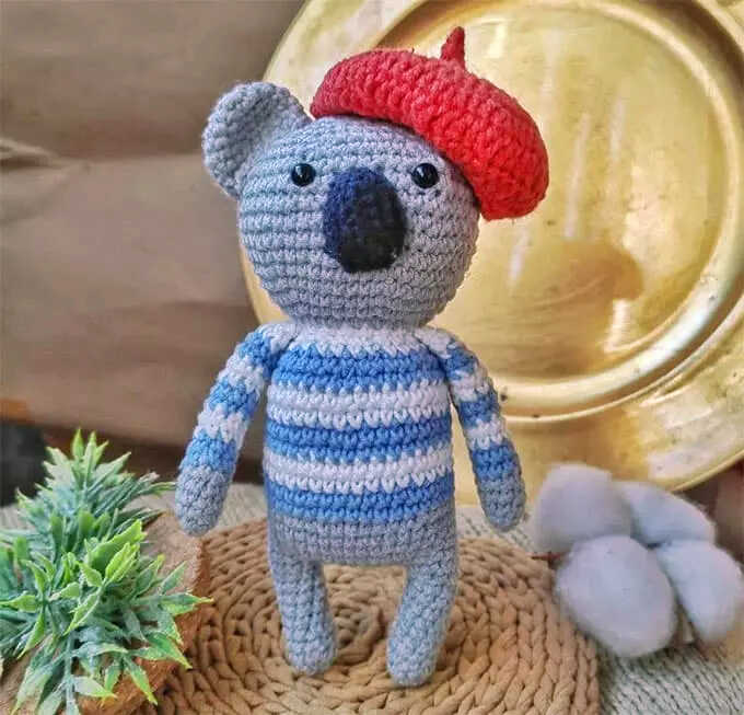 This koala amigurumi crochet pattern is suitable for confident beginners who are comfortable working in the round. All parts are crocheted in a spiral unless otherwise noted, with the legs, body, and head worked as one continuous piece for a clean finish. The beret is removable but can be sewn on if desired, while the nose is crocheted and the eyes are plastic safety eyes with screw fastening. Difficulty Level: Beginner-Friendly, and it also works well as a Quick to Make Amigurumi when crocheted at a relaxed pace.
