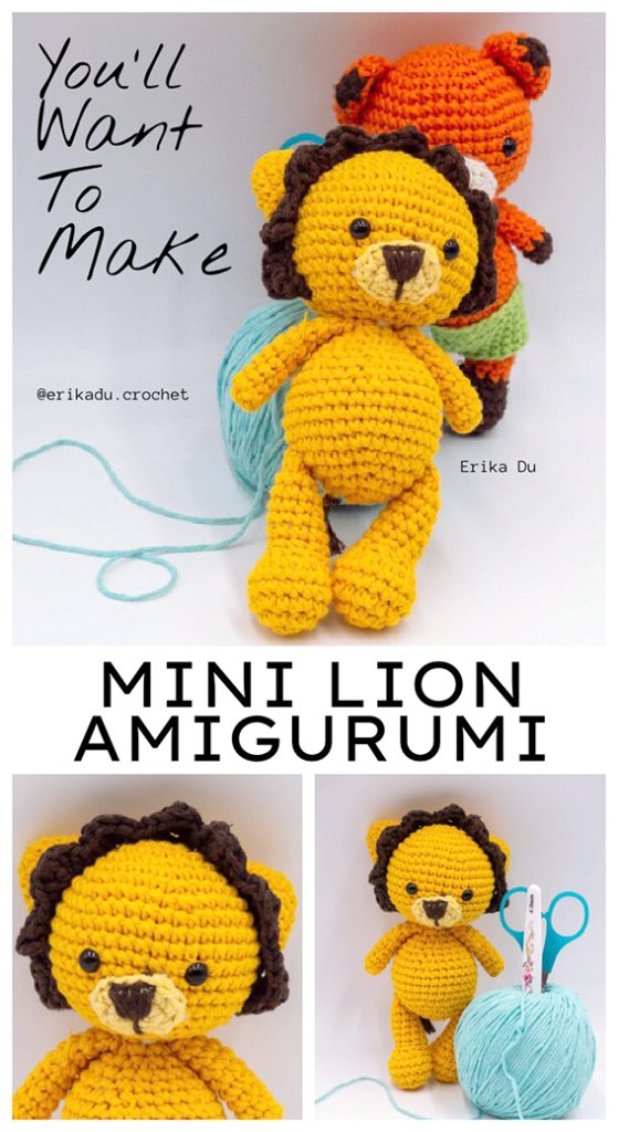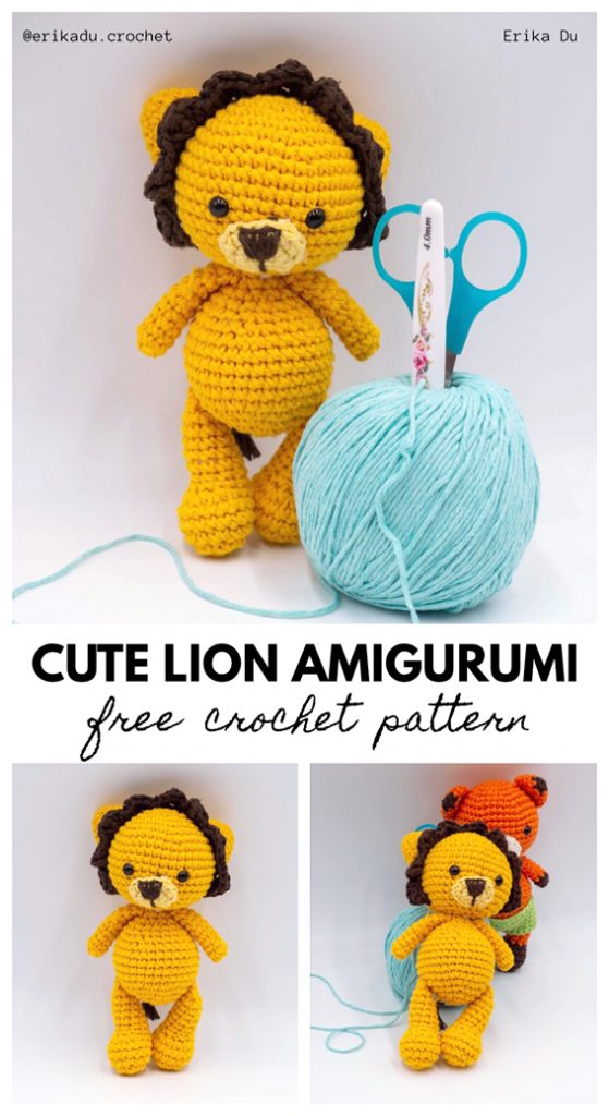 Create something adorable with this free lion amigurumi pattern designed by Erika Du of @erikadu.crochet. With its rounded shape and warm colors, this little lion is perfect for DIY crochet gift ideas, nursery decor, or soft handmade toys. Its simple construction fits Easy Crochet Projects and Low Sew Amigurumi Patterns, and we sincerely thank Erika Du for sharing this beautiful design. You will also find lovely lion amigurumi ideas at the end of the pattern.